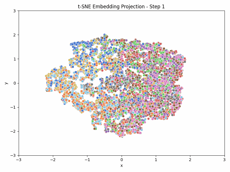 axs.set_title(f"t-SNE Embedding Projection - Step {step}")