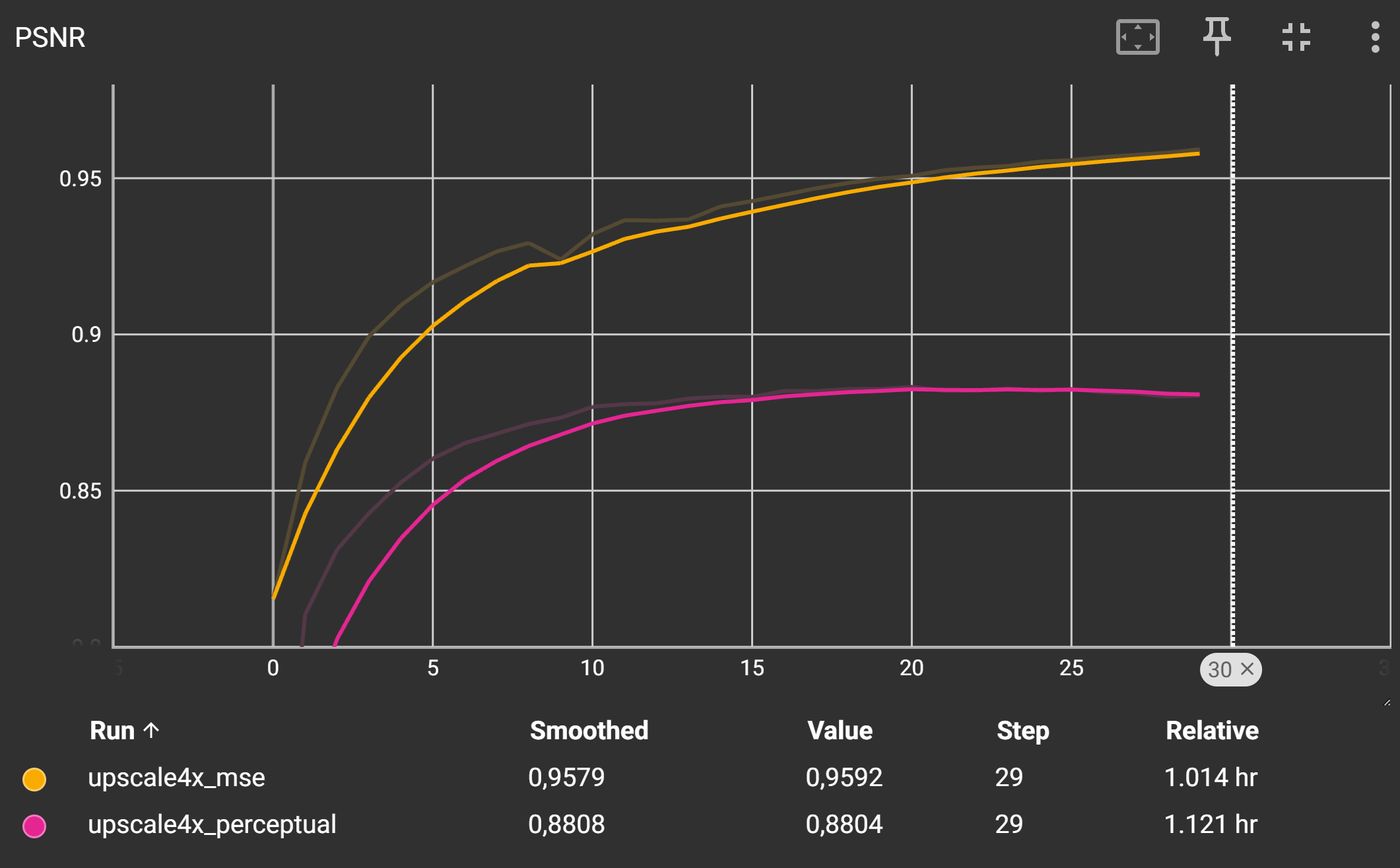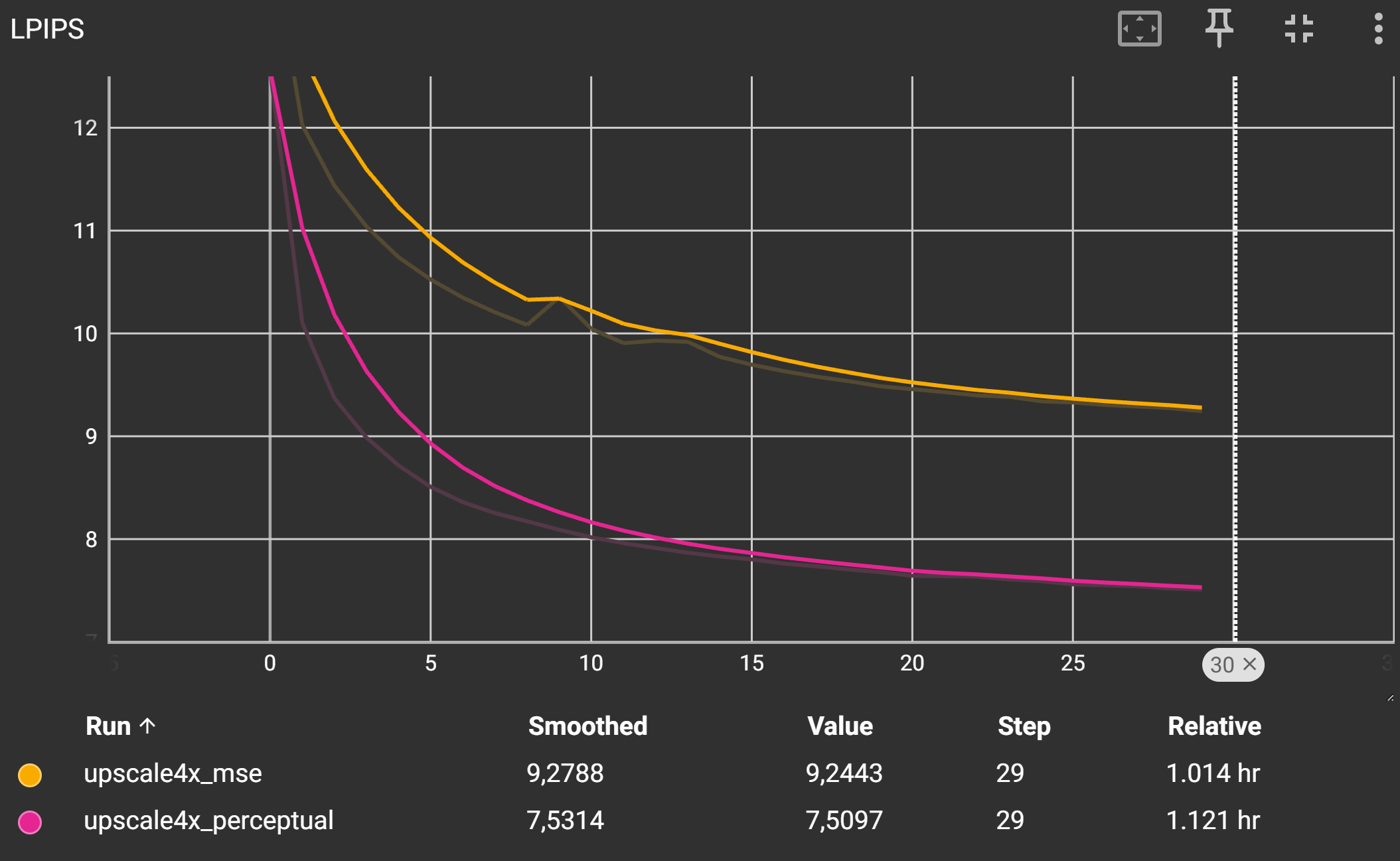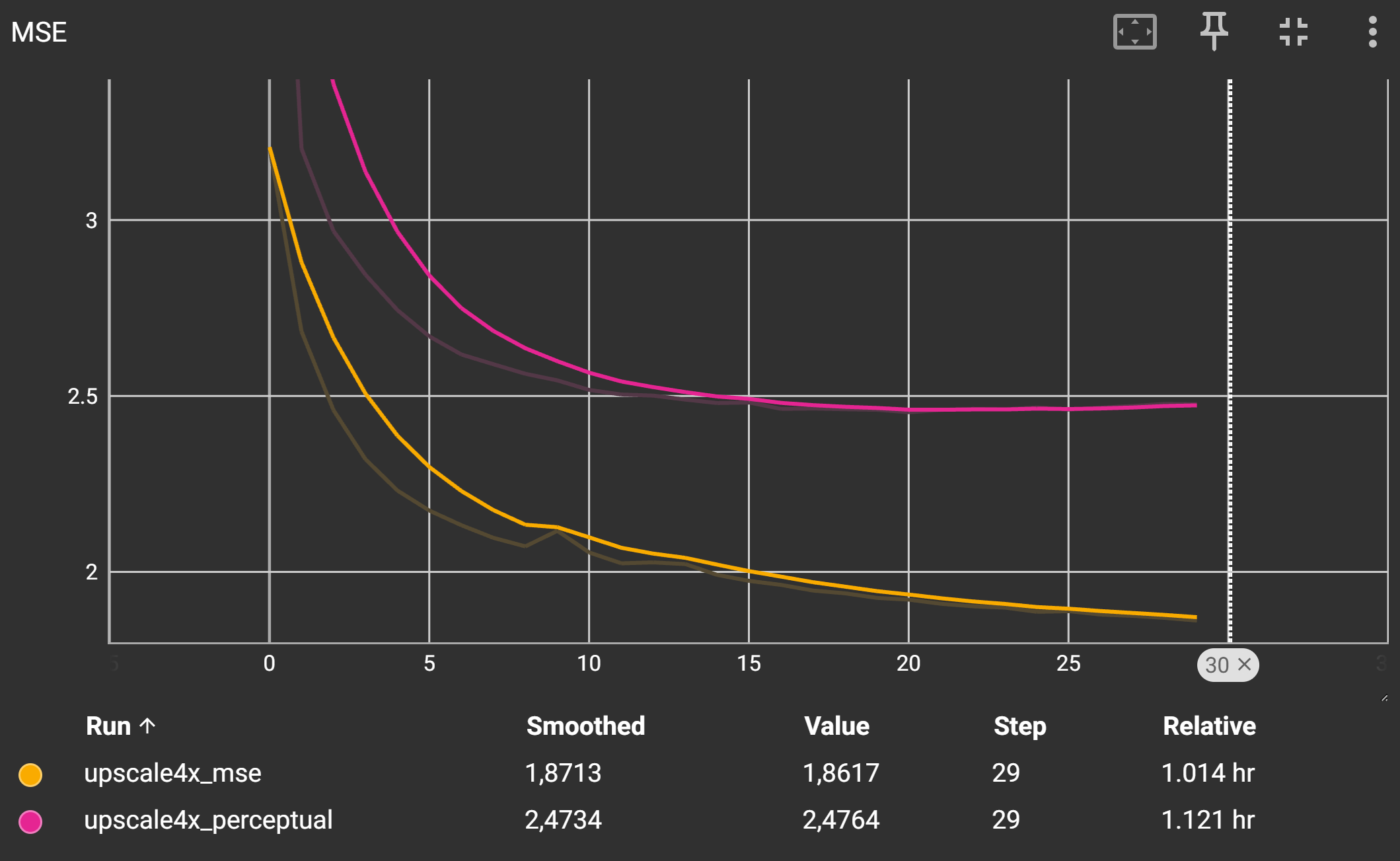Trainieren Sie dann ihren Upscaler sowohl mit dem Perceptual Loss als auch mit dem MSE-Loss. Vergleichen Sie wieder.