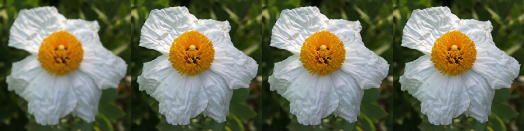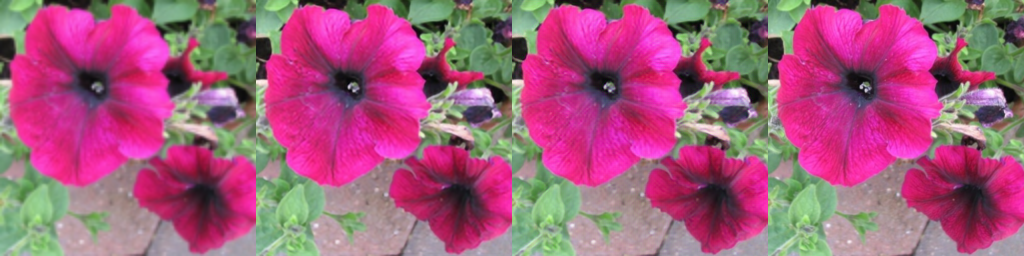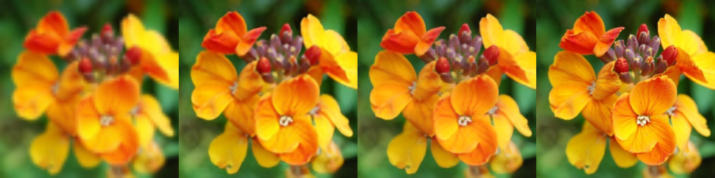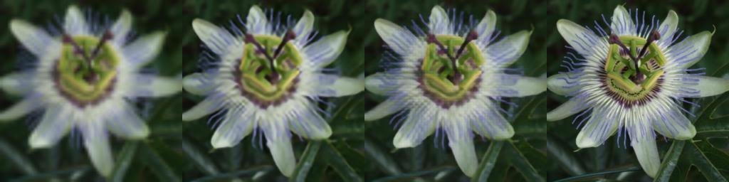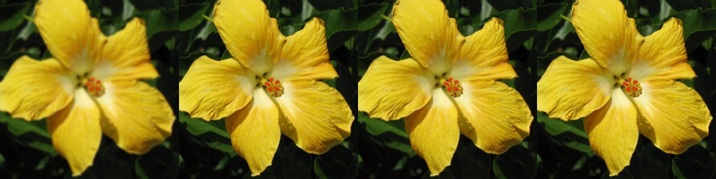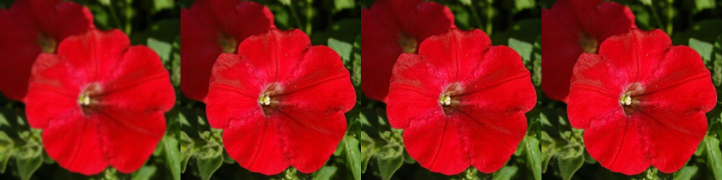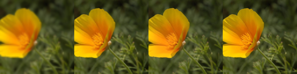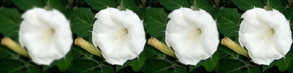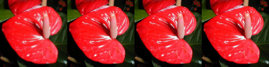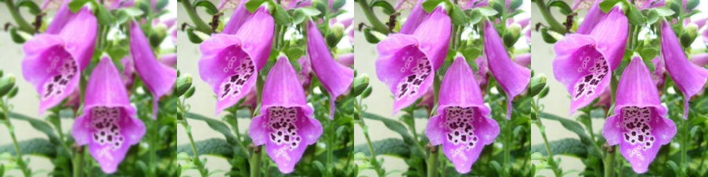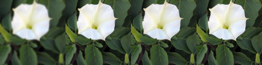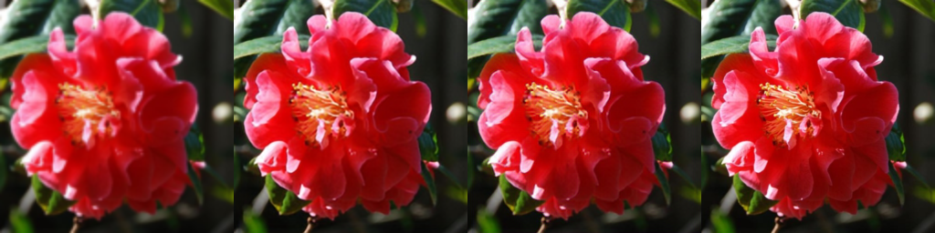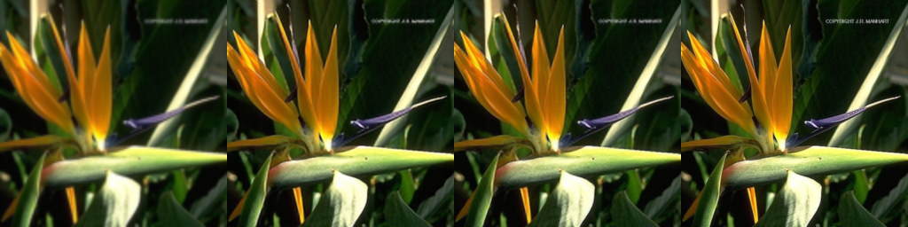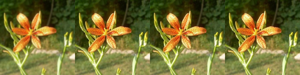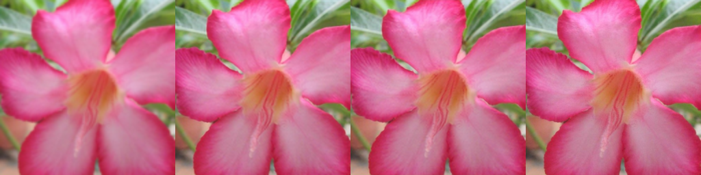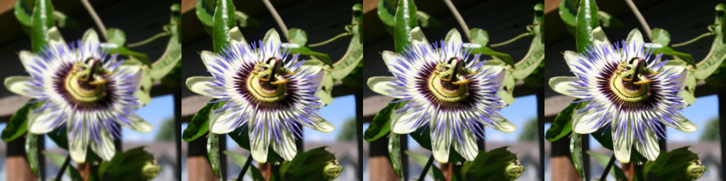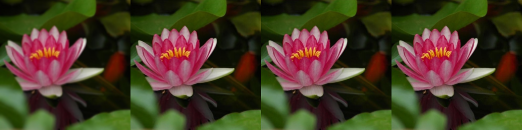 In den unten stehenden Bildern sehen Sie die Ergebnisse des Trainings. Das ganze linke Bild zeigt das (hochskalierte) Eingabebild in niedriger Auflösung. Daneben finden Sie die Ausgabe des Upscalers, welcher mit MSE-Loss trainiert wurde gefolgt von der Ausgabe des Upscalers, welcher mit Perceptual Loss trainiert wurde. Ganz rechts sehen Sie das Ground Truth Bild in hoher Auflösung.